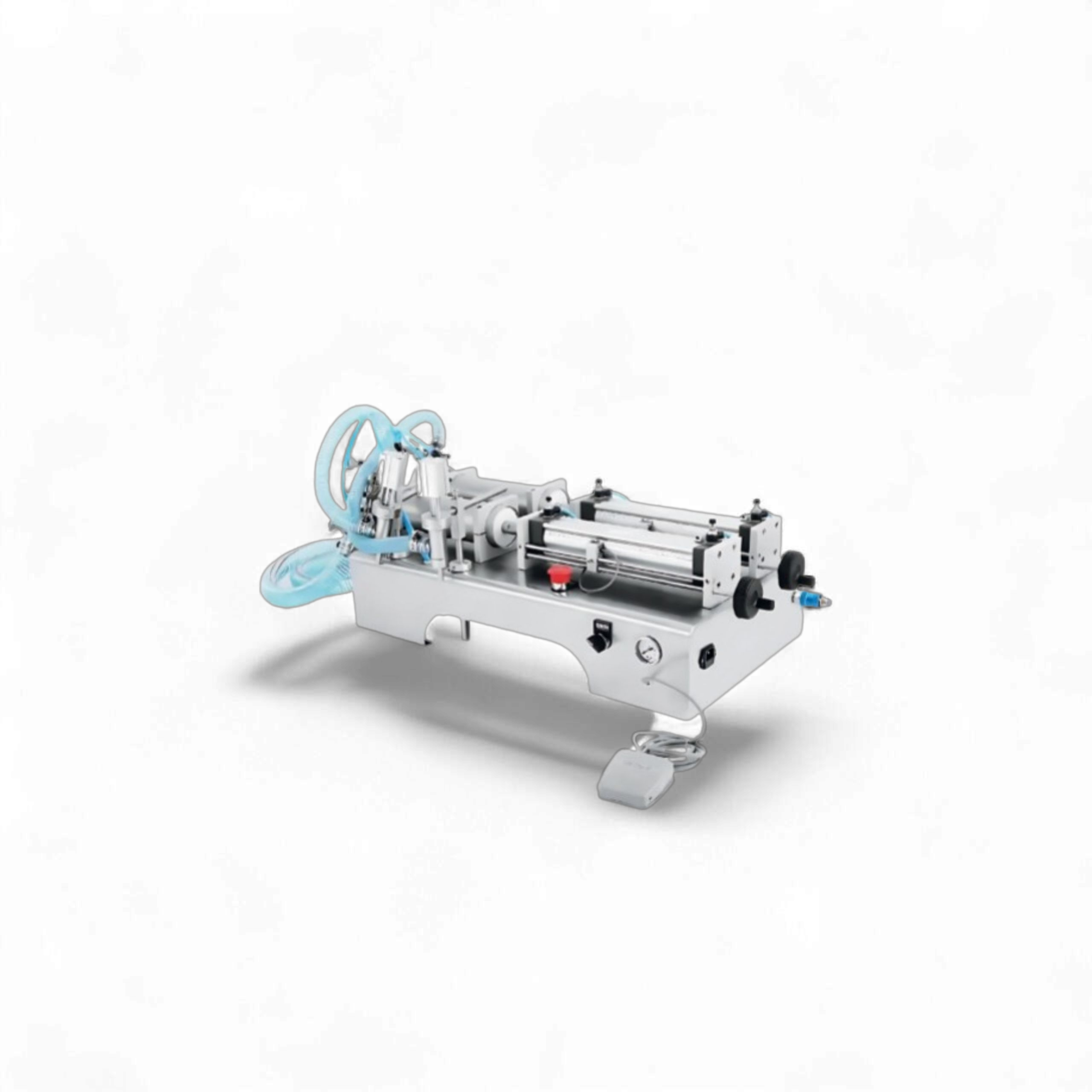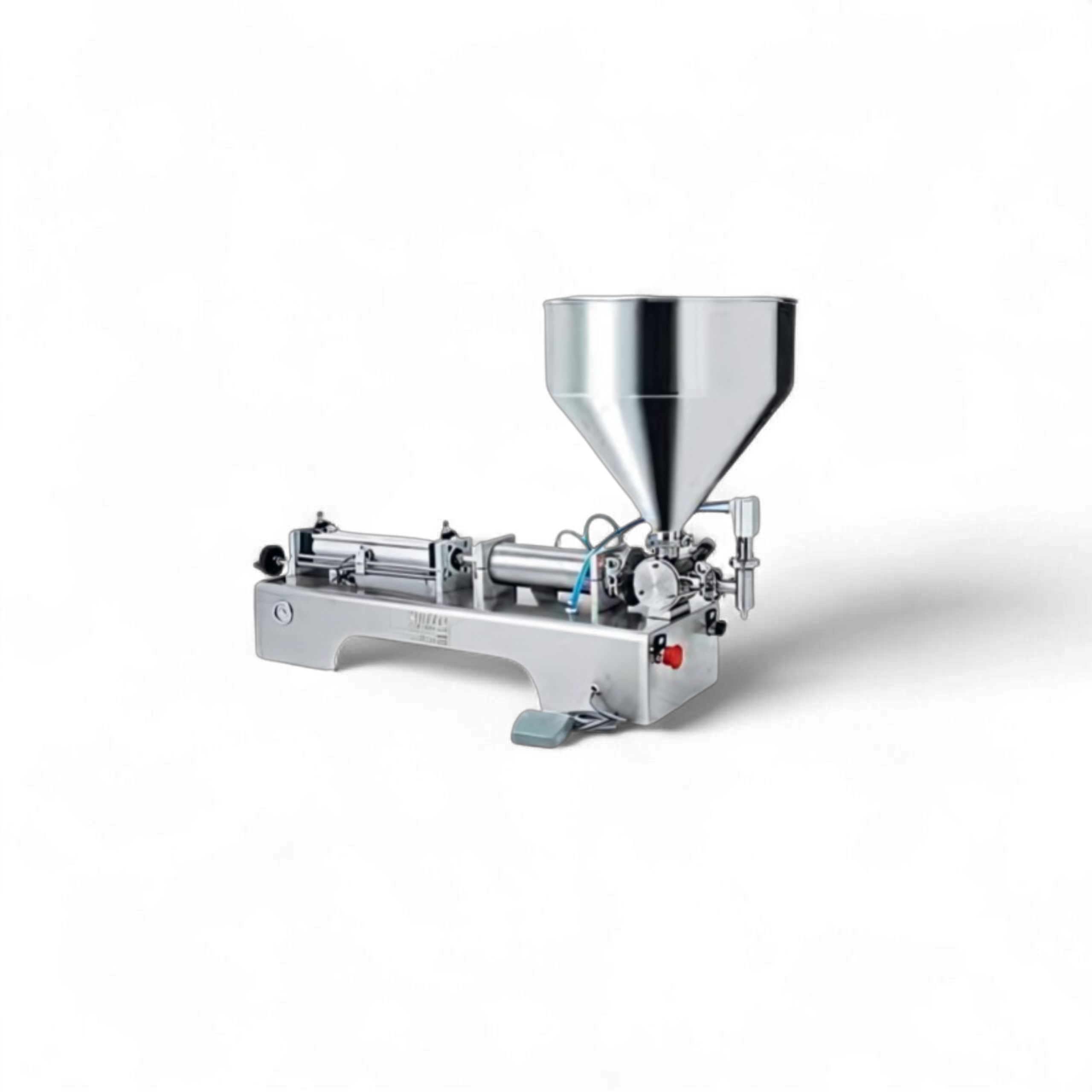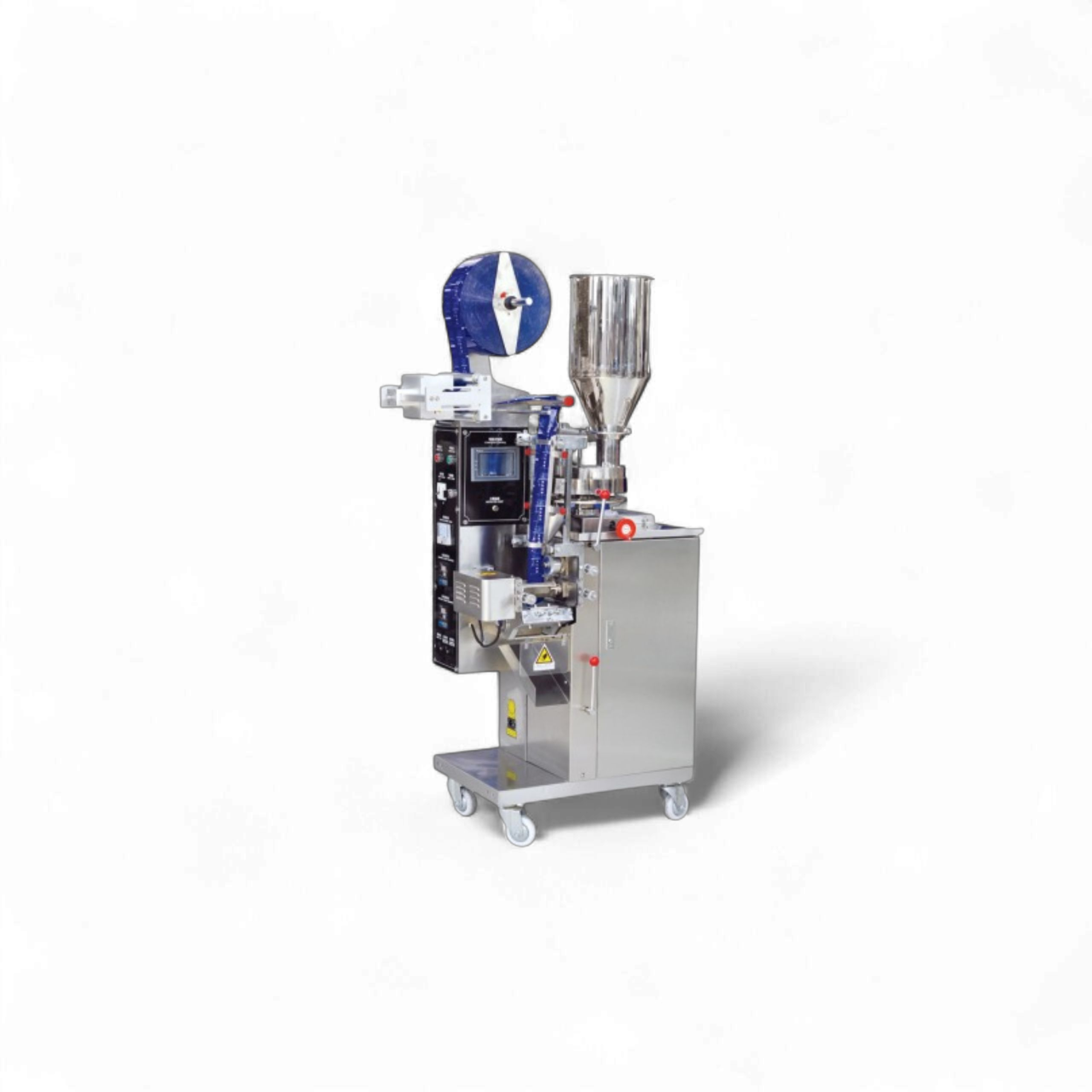 Compact and efficient for filling liquids such as water, juice, oil, or milk into pouches or containers. Ideal for small to medium production.