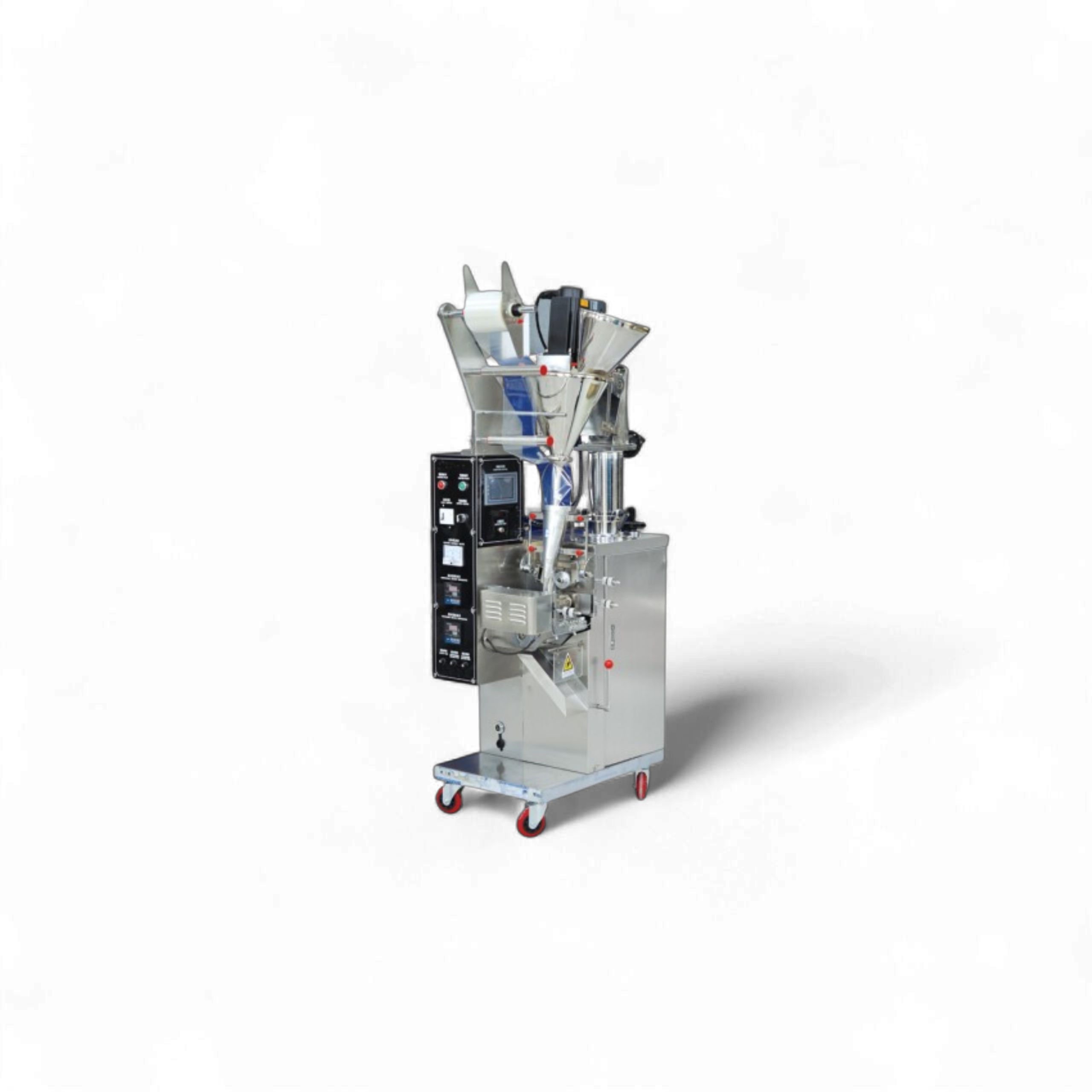 Designed for automatic packing of granular products like grains, pulses, sugar, tea, etc. It measures, fills, and seals in one operation.