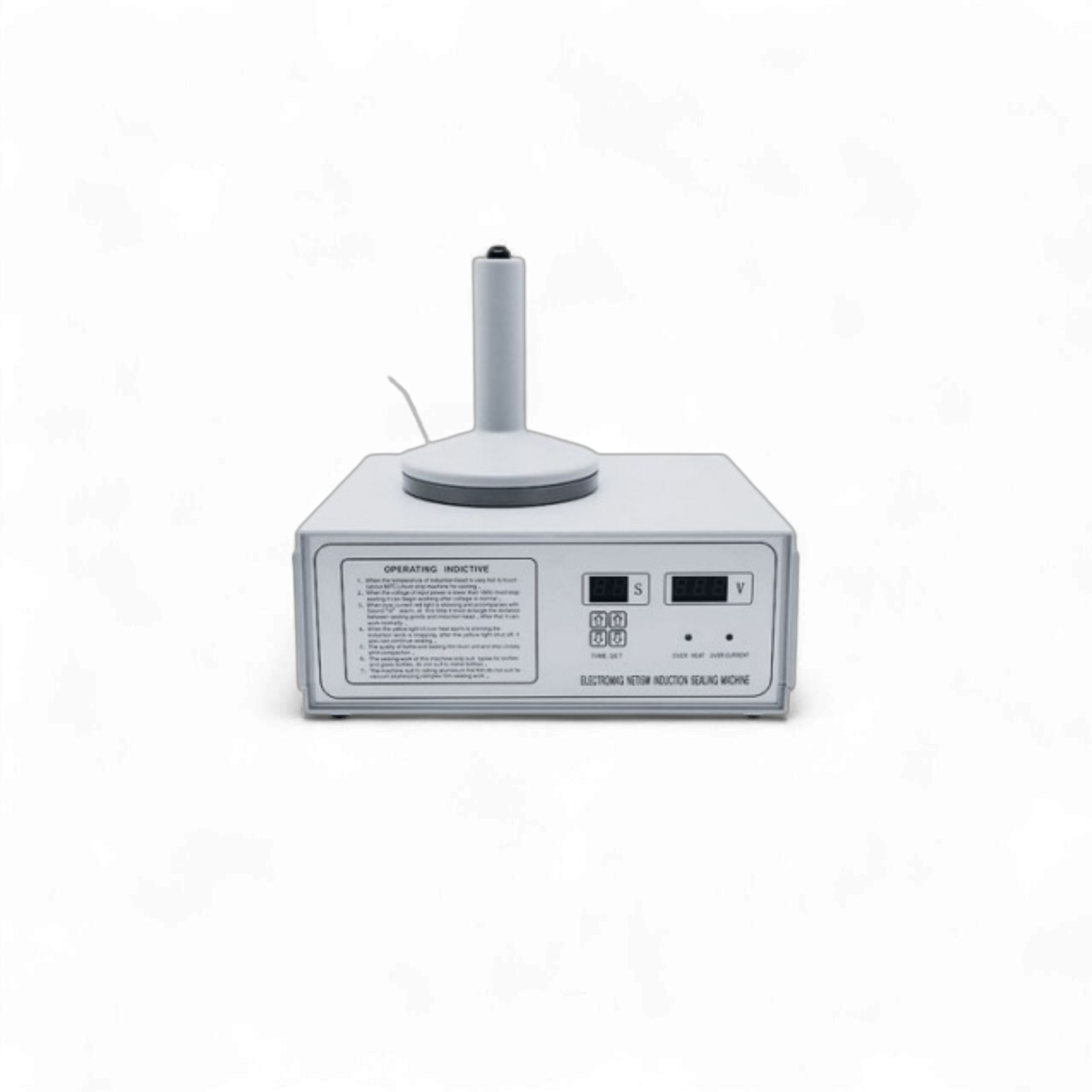 Compact induction sealing machine for sealing caps between 20 to 80 mm. Suitable for low to mid-range volume bottle capping.