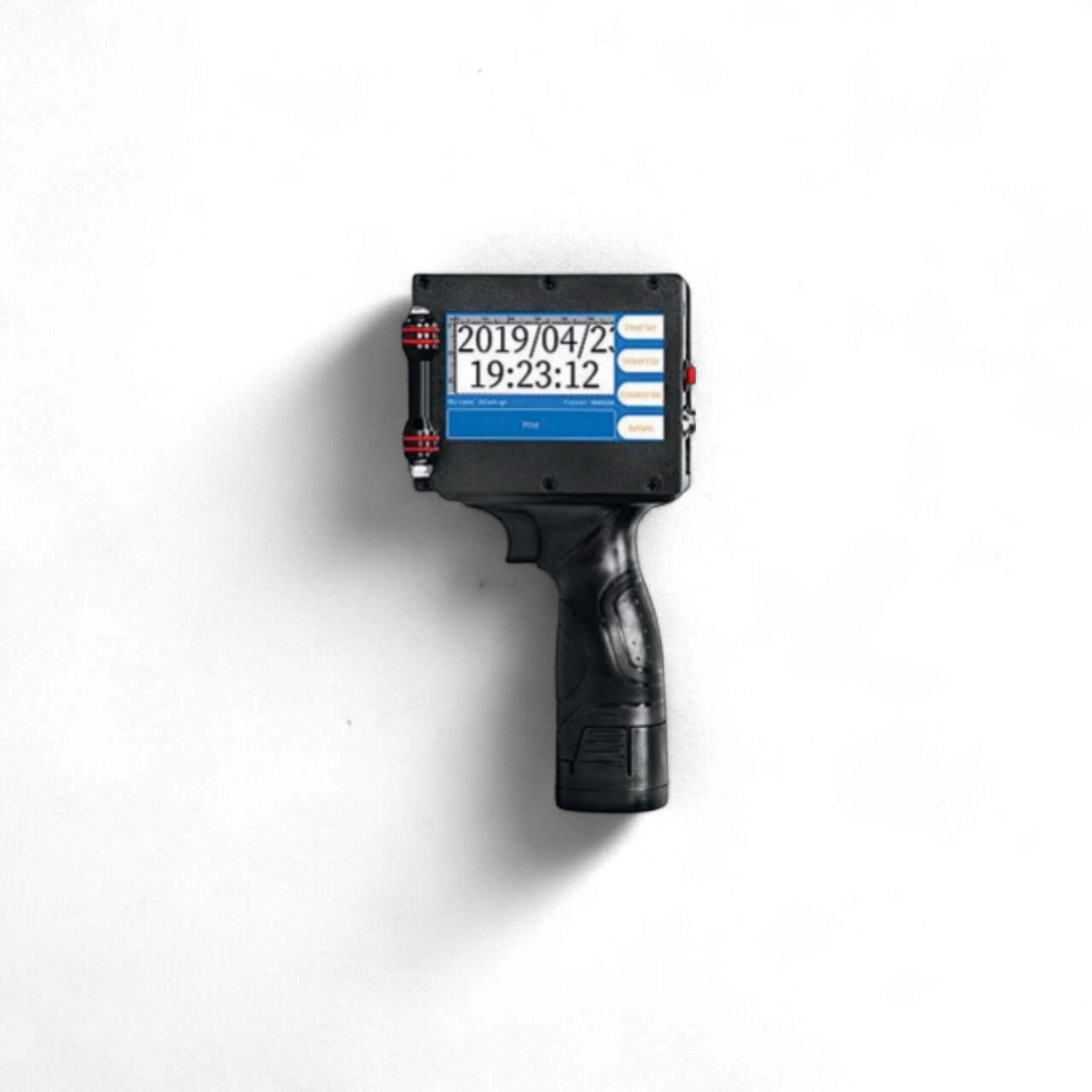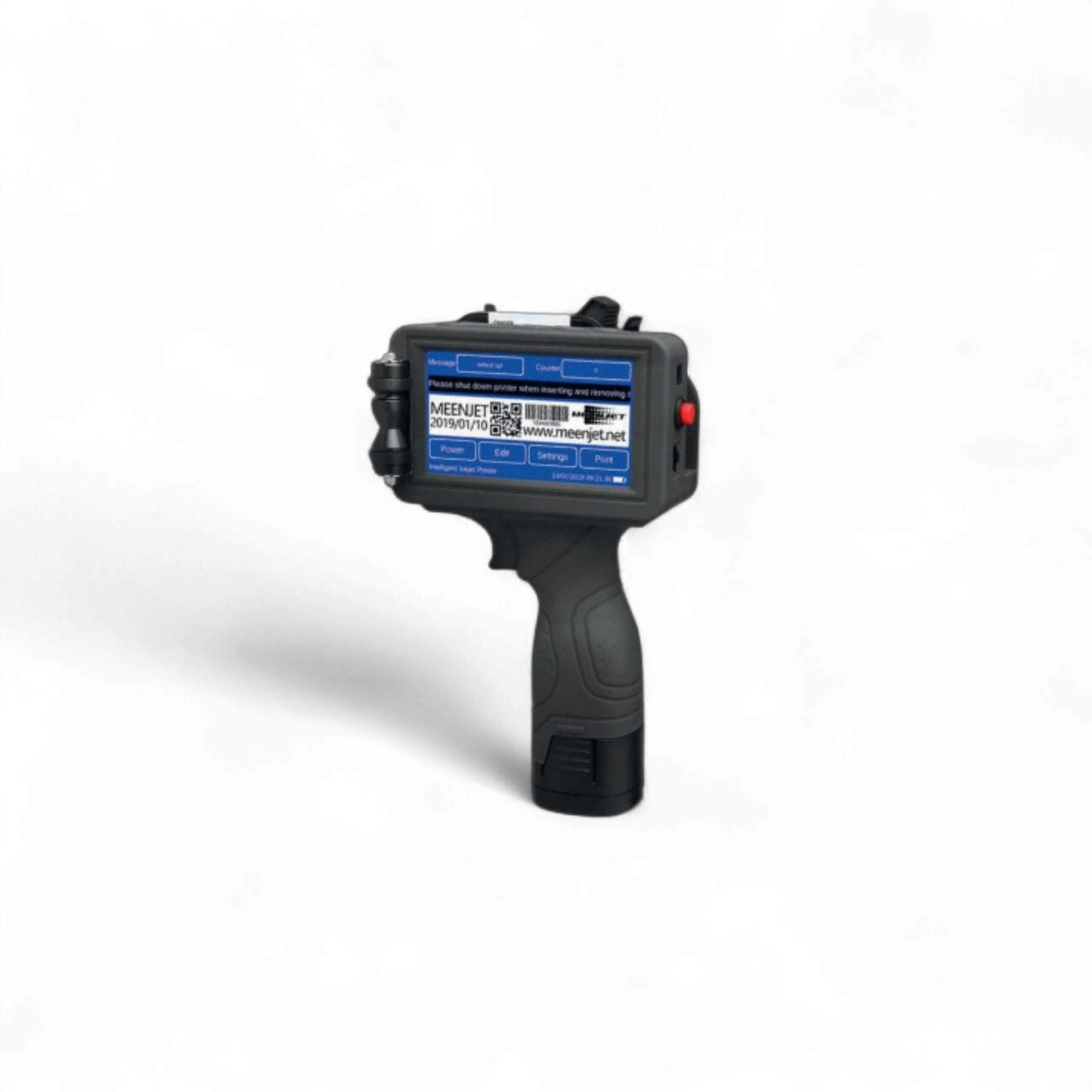 Prints basic info like batch number and MRP manually—affordable and compact.