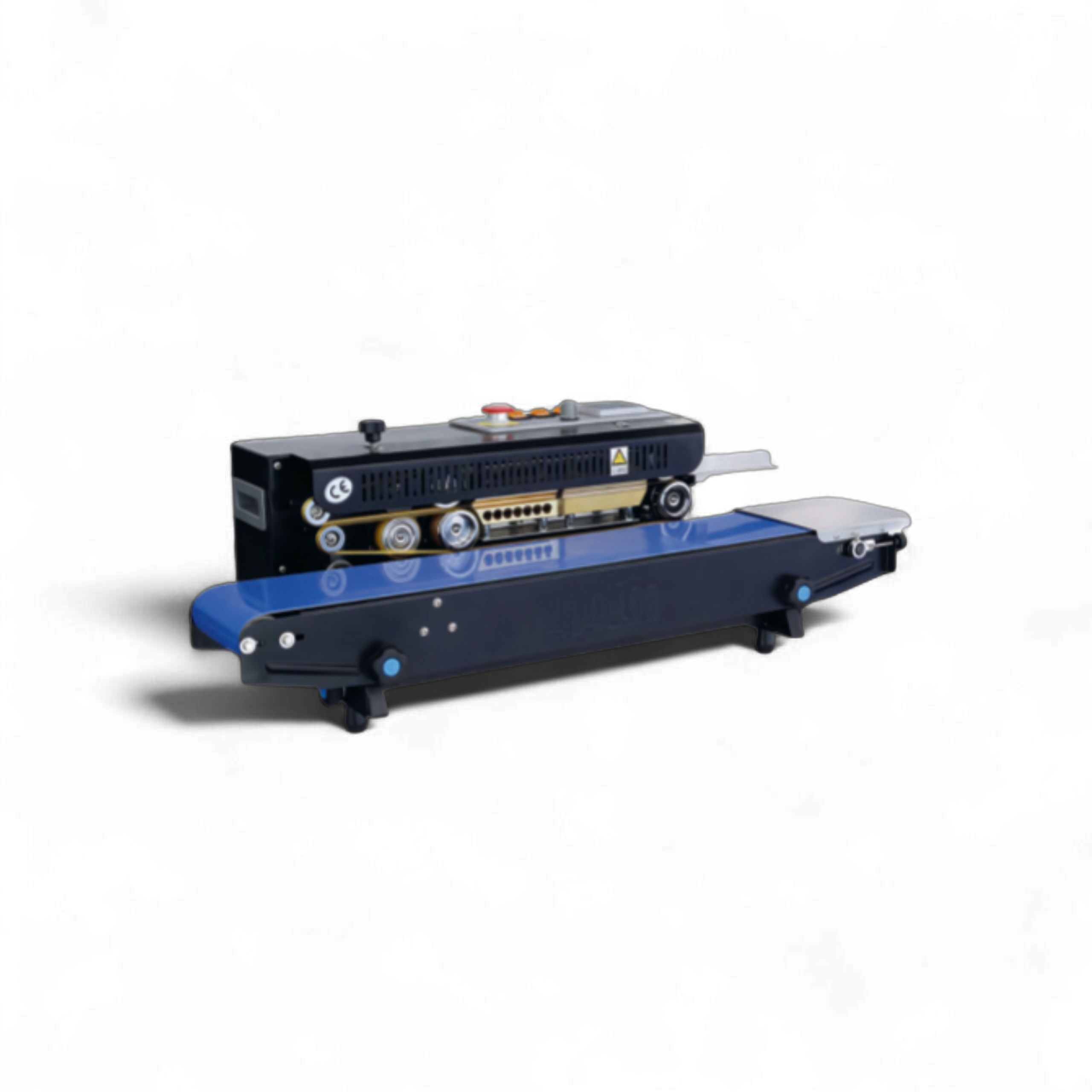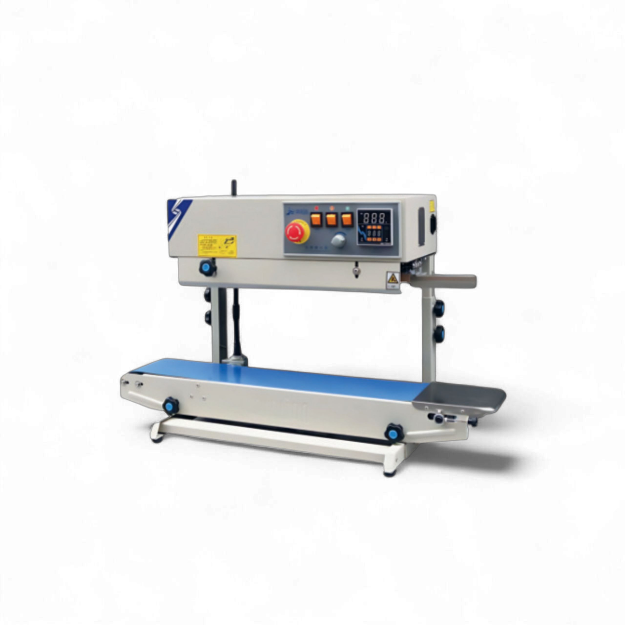 Continuous sealing machine for horizontal pouches. Ensures quick, airtight seals for high-speed production.